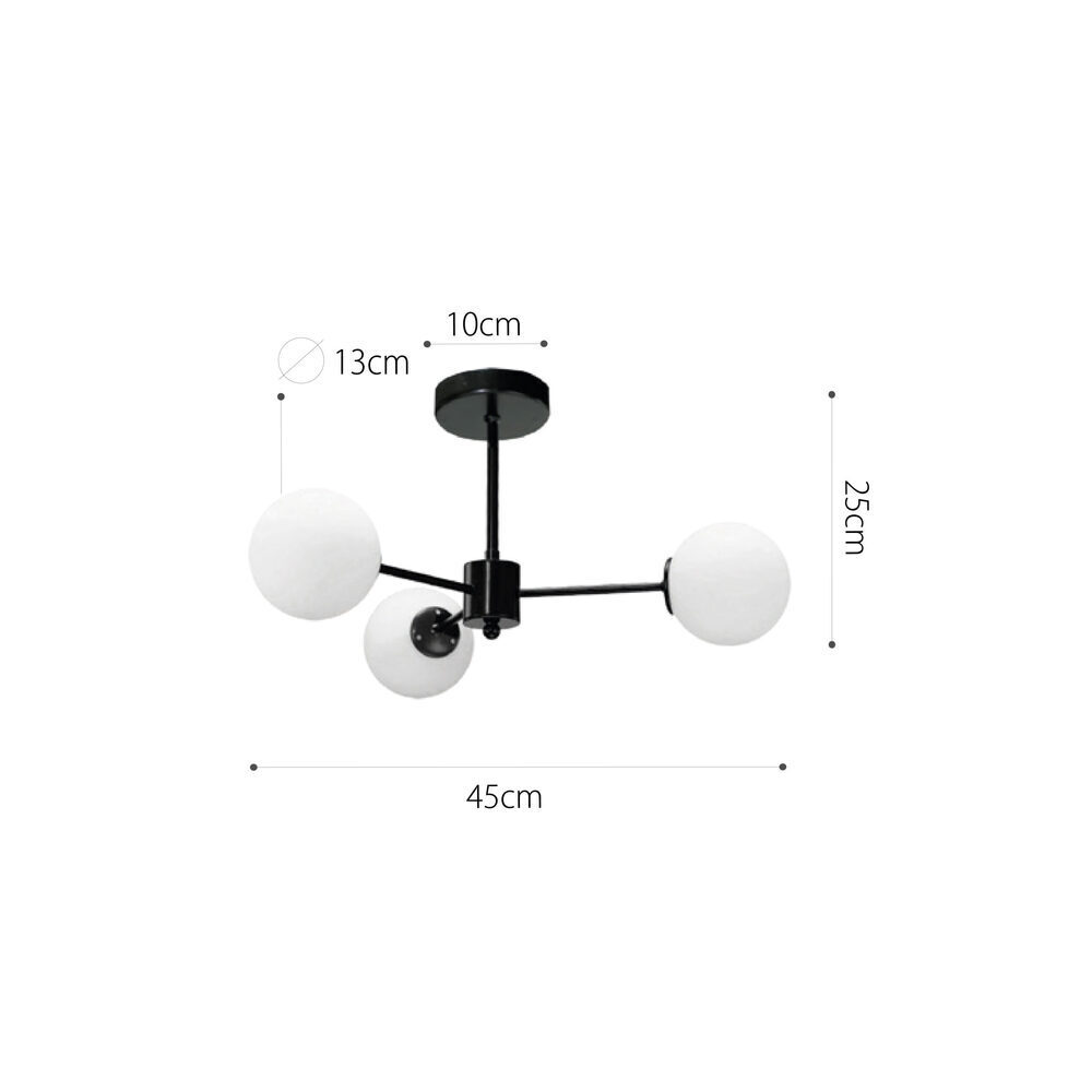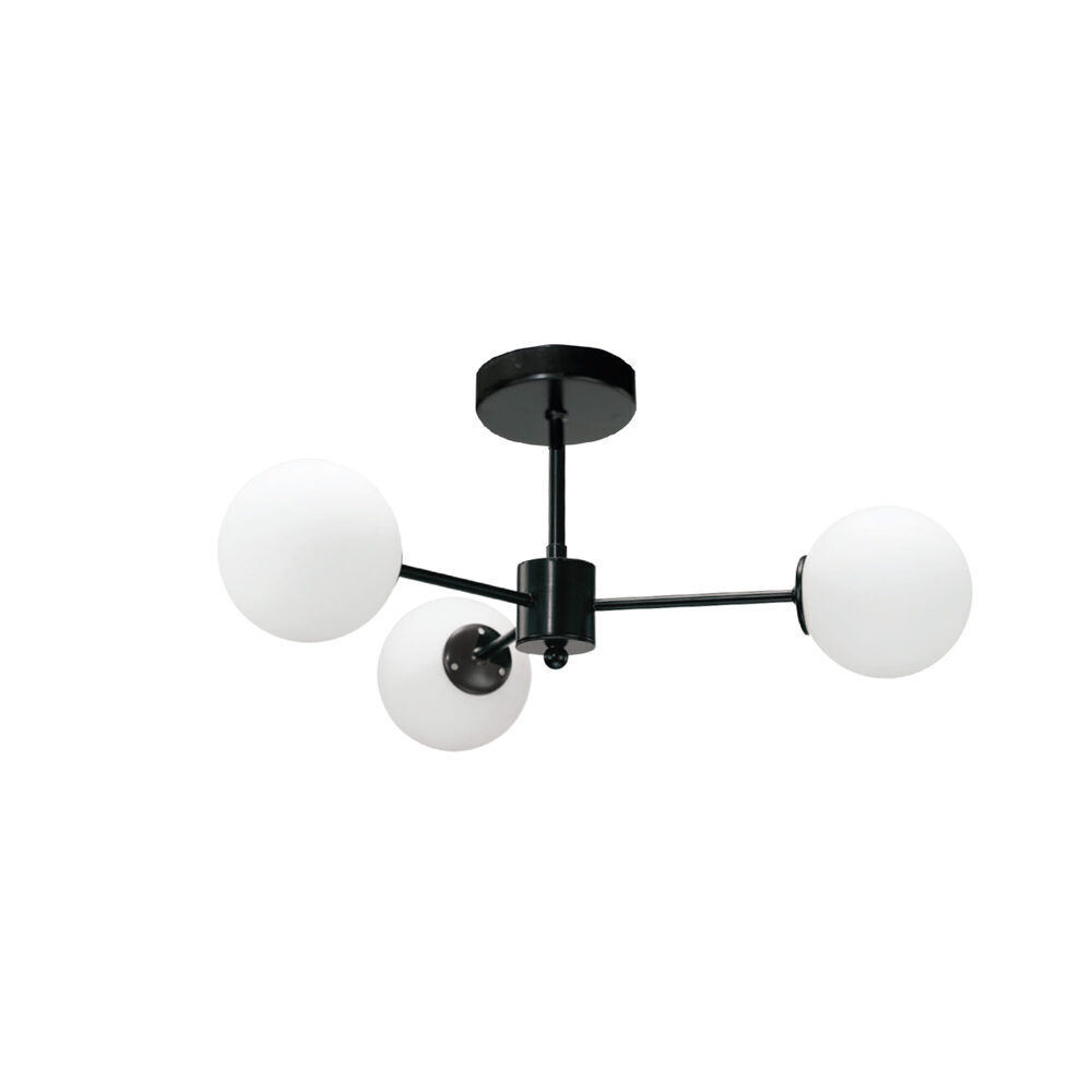 Πρόκειται για ένα μαύρο μεταλλικό φωτιστικό με λευκή οπαλίνα στο τελείωμα και τρεις λαμπτήρες. Η μίνιμαλ σχεδίασή του το τοποθετεί ιδανικά σε οποιονδήποτε μοντέρνο εσωτερικό χώρο, ακόμα και αν είναι χαμηλοτάβανος.