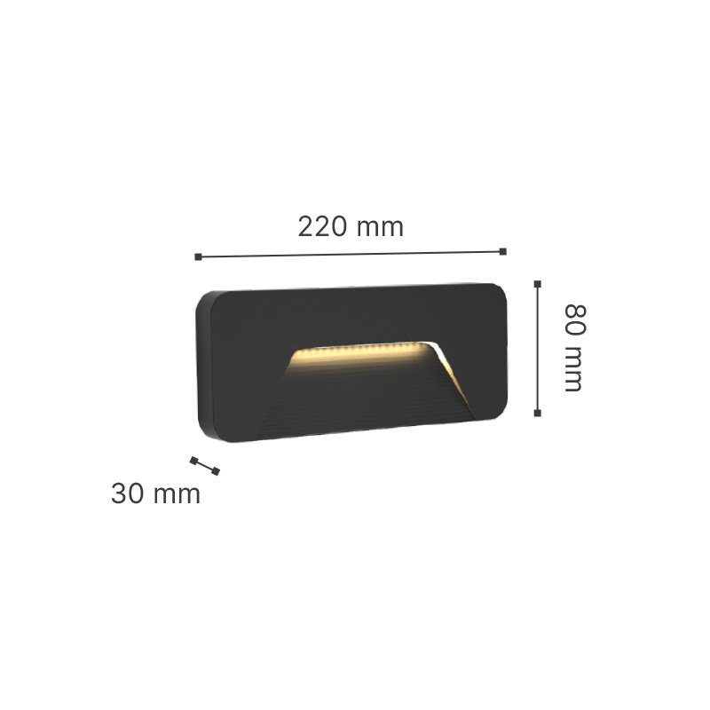 Επιτοίχιο φωτιστικό LED από την οικογένεια Kentucky σε ανθρακί χρώμα. Η θερμοκρασία χρώματος μπορεί να αλλάξει από 3000K σε 6000K κατά την εγκατάσταση από τον διακόπτη που παρέχεται στην πλακέτα.